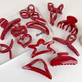 Elegant Red Geometry Hair Claw for Women